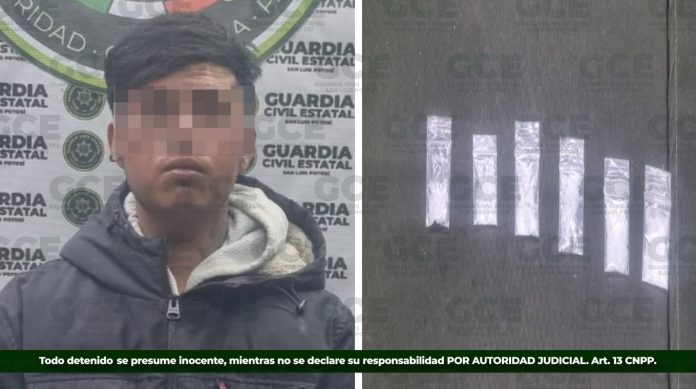 Nuestros agentes de la Guardia Civil Estatal detuvieron en el operativo Blindaje sobre la carretera a Guadalajara, a Oscar “N” de 22 años, quien llevaba consigo seis dosis de “cristal”.