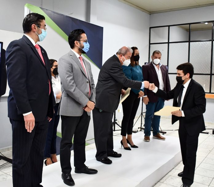 La entrega de estos certificados se realizó en el Auditorio Maestro Gerardo Quirino Muñiz del Instituto Universitario de Ciencias Penales y Forenses de la FGESLP, en un evento semipresencial, atendiendo las recomendaciones sanitarias.