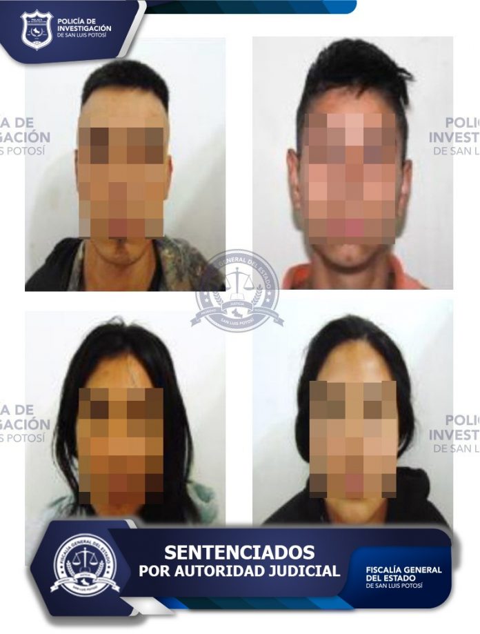 Litigadores de la Unidad de Homicidios de la Fiscalía General del Estado de San Luis Potosí (FGESLP) lograron conseguir una condena de 70 años de prisión para Luis Daniel “N”, Víctor Eduardo “N”, María del Rosario “N” y Aurora Betzabé “N”, por su responsabilidad en el delito de homicidio calificado agravado en concurso real con dos homicidios calificados más.