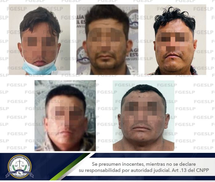 SLP. – La Fiscalía General del Estado de San Luis Potosí (FGESLP) cumplimentó órdenes de aprehensión en contra de un Policía de Investigación y 4 civiles, los cuales estarían presuntamente implicados en el homicidio de dos jóvenes y en donde una persona más resultara herida en el municipio de Soledad de Graciano Sánchez.
