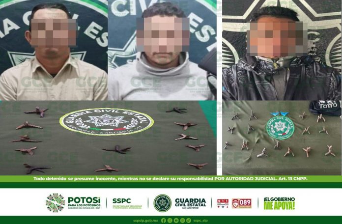 S.L.P.- En diferentes operativos de seguridad, policías de la Guardia Civil Estatal detuvieron a presuntos objetivos criminales, vinculados en actividades ilícitas, asegurándoles objetos de varilla conocidos como “poncha llantas”.