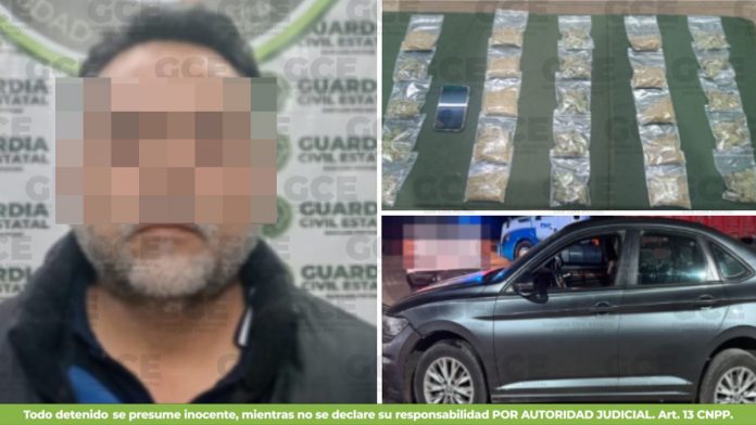 Uno de los hechos ocurrió en la capital potosina, en fraccionamiento de El Aguaje, donde fue detenido José “N” de 53 años, luego de asegurarle 25 bolsas con marihuana, así como un vehículo Jetta, modelo 2019, en el que se desplazaba.