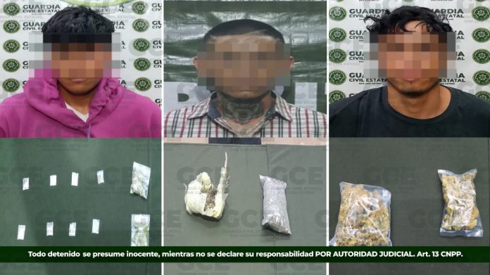 En las últimas 24 horas, efectivos estatales reportaron la detención de tres sujetos, posiblemente vinculados en actividades ilegales como la venta de estupefacientes en la entidad, evitando que sustancias nocivas lleguen a la juventud potosina.