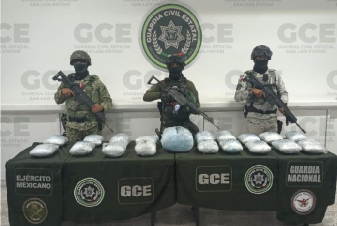 San Luis Potosí, S.L.P.- En el marco del Plan Integral de Seguridad que pondera la coordinación interinstitucional con autoridades federales y municipales, agentes de la Guardia Civil Estatal y efectivos de la Defensa aseguraron 15 paquetes con droga, mientras que en otra acción fue capturado un presunto narcomenudista.