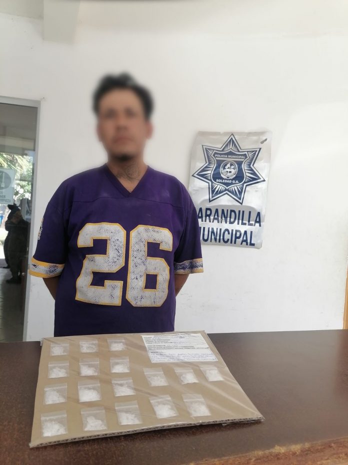 En el marco de los trabajos preventivos del operativo “San Luis Seguro”, agentes de Seguridad Pública de Soledad llevaron a cabo el arresto de una persona del sexo masculino que fue descubierto en posesión de varias dosis de la droga sintética conocida como cristal.