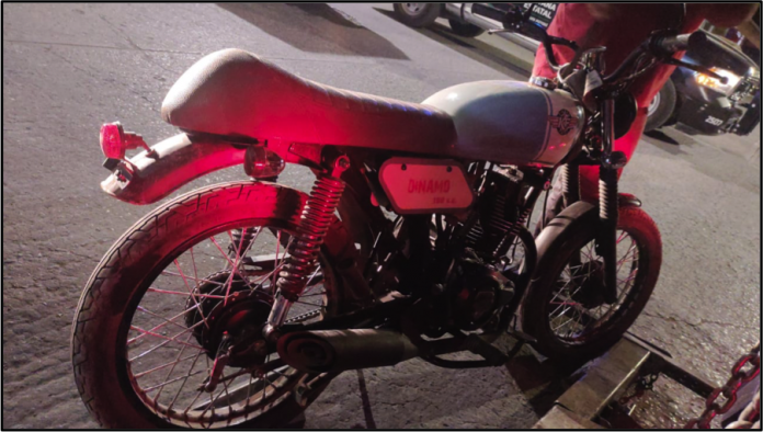 Durante los operativos de vigilancia sobre las calles de Jazmín y Bugambilias, en la colonia Las Flores, los Metropolitanos detuvieron a José B., de 27 años de edad, por presunta tripulación de una motocicleta marca Dinamo, color azul, modelo 2020, la cual fue robada el día 17 de agosto de 2021.