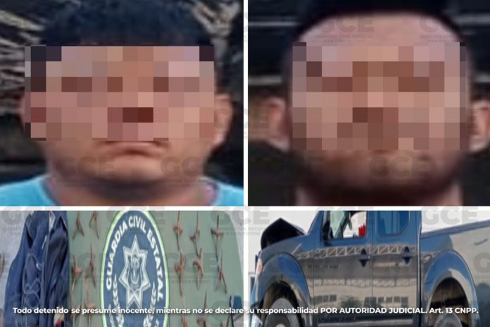 Acciones contundentes de seguridad de nuestros agentes de la Guardia Civil Estatal, derivaron en la detención de Ulises “N” de 25 años y de Leopoldo “N” de 28 años, quienes fueron asegurados con 20 artefactos metálicos utilizados para dañar los neumáticos, una radio frecuencia y una camioneta color negro.