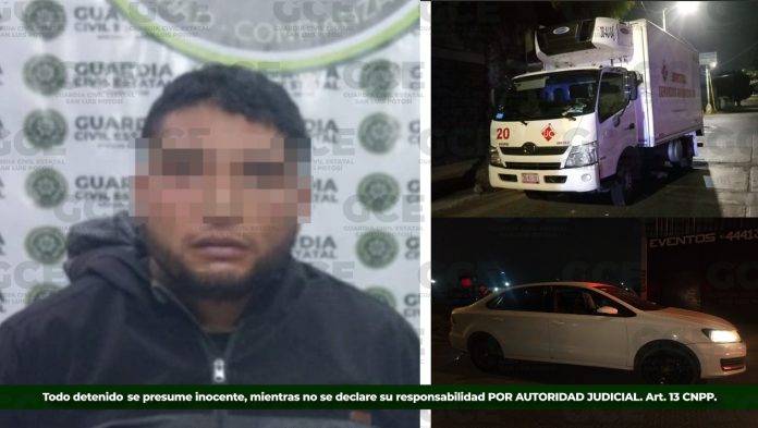 La GCE detuvo a Christian «N» de 31 años, quien trató de huir con un vehículo marca Hino de carga, tras presuntamente despojar a la víctima de la unidad y retenerlo contra su voluntad, siendo rescatado por elementos estatales.