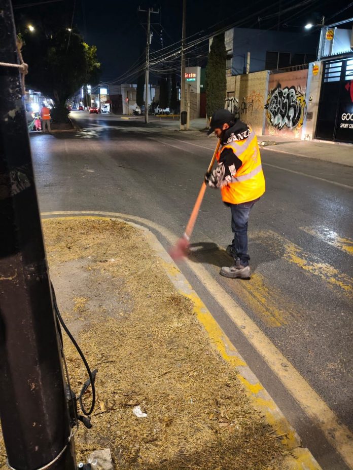 Entre los trabajos más recientes efectuados durante la noche destacan el hidrolavado en la zona de San Juan de Guadalupe, así como labores de limpieza general en la avenida Morales Saucito. De manera paralela, el ayuntamiento también avanza en el mantenimiento de la pintura de las canchas ubicadas en la calle Rosalío Sánchez Niño, como parte del programa “Color, Mi Jugada”.