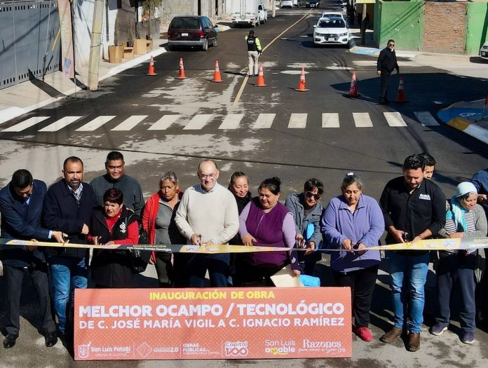 Calles que por años permanecieron en el abandono, hoy son vialidades funcionales y seguras. El Alcalde Enrique Galindo Ceballos entregó las calles Melchor Ocampo y Tecnológico, en la colonia Plan Ponciano Arriaga, totalmente pavimentadas, iluminadas y con infraestructura hidráulica renovada, como parte del compromiso del Gobierno de la Capital de transformar la movilidad y la calidad de vida en todas las zonas de San Luis Potosí.