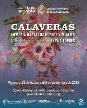 En el marco de la Celebración del Día de Muertos, el Gobierno de la Capital, a través de la Dirección de Cultura Municipal y en colaboración con Patatús Mezcal Ancestral, presenta la exposición “Calaveras: Memoria hasta los huesos y el alma”, de la artista mexicana Sylvia Torres Estrada.