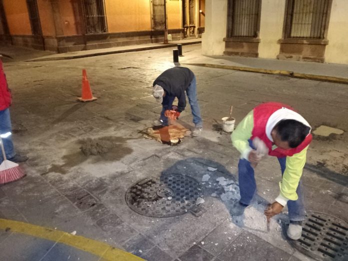 Como parte del Programa de Bacheo Emergente, el Gobierno Municipal de San Luis Potosí, a través de la Dirección de Obras Públicas, llevó a cabo trabajos nocturnos de reposiciones de adoquín en la calle de Universidad esquina con Morelos, en el Centro Histórico.
