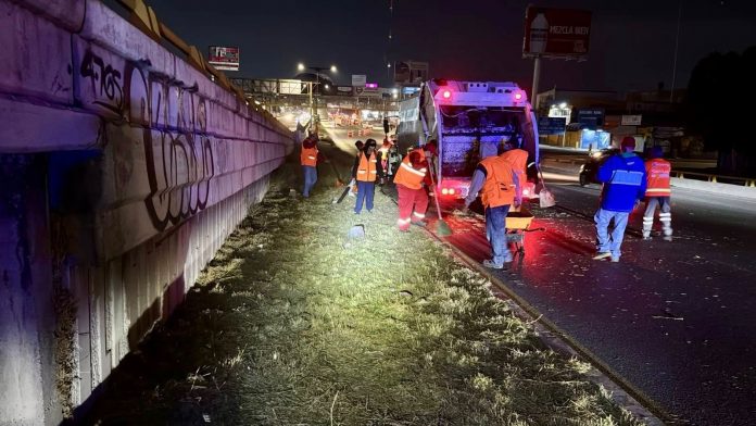 La Dirección de Servicios Municipales señaló que para no interrumpir el intenso tráfico vehicular, así como para evitar riesgos de incidentes, los trabajos se realizan en horario nocturno, con la debida señalización preventiva y con el apoyo de la Policía Vial.