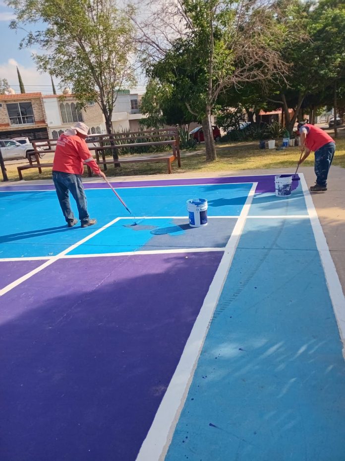 Igualmente, trabajadores de la Coordinación de Imagen Urbana acudieron a rehabilitar la cancha de la Calle Papagayos, donde realizaron labores de limpieza y retiro de maleza, con el fin de que los jóvenes de la zona puedan realizar adecuadamente sus prácticas deportivas.