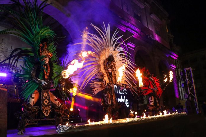 En el marco del Día de la Nación Pluricultural, el Gobierno Municipal de San Luis Potosí, a través de su Dirección de Cultura Municipal, presentó el espectáculo «Prehispánica Electrónica» a cargo de Alyosha Barreiro y el Grupo de Danza Prehispánica Nok Niuk ante un numeroso público que abarrotó la Plaza de Armas en el corazón del Centro Histórico de San Luis Capital.
