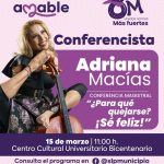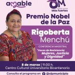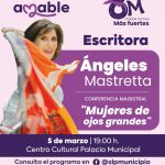 El programa incluye cuatro conferencias gratuitas, entre las que sobresalen la que dará la periodista y escritora, Ángeles Mastretta, el 5 de marzo en Palacio Municipal a las 7 de la noche; el sábado 8, estará la activista y Premio Nobel de la Paz 1992, Rigoberta Menchú, a las 11 de la mañana en el Centro Universitario Bicentenario y el sábado 15, en ese mismo lugar y mismo horario estará la escritora Adriana Macías; mientras que el 22 de marzo estará la periodista deportiva Inés Sainz en el Teatro de la Paz a las 11 de la mañana.