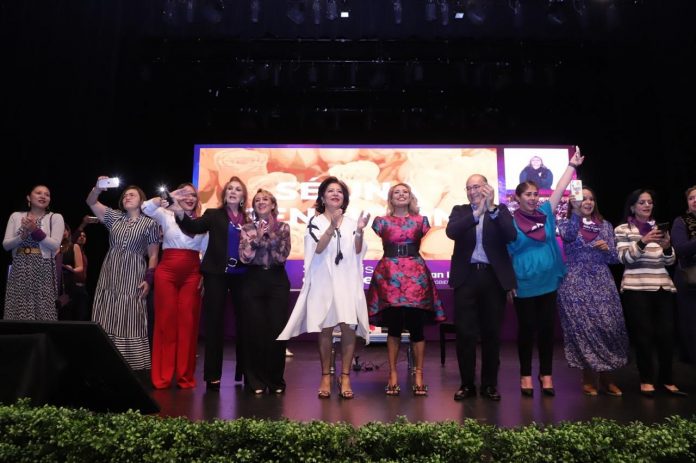 Al continuar la serie de eventos organizados por el Gobierno Municipal para conmemorar el Día Internacional de la Mujer, Adriana Macías ofreció la brillante y motivadora conferencia magistral “¿Para que Quejarse? ¡Sé Feliz!”, en la que destacó que no existen límites para la superación cuando se trabaja con constancia, disciplina y voluntad