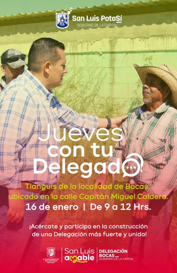 Como parte de la estrategia de ser un Gobierno Capitalino cercano, de puertas abiertas y con soluciones, el responsable de Bocas, Jaime Waldo Luna dará inicio este 16 de enero el programa denominado “Jueves con tu Delegado”, por lo que extendió la invitación a la población de esta zona de San Luis Potosí.