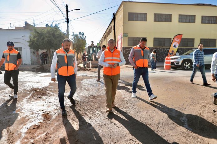 El Presidente Municipal de San Luis Potosí, Enrique Galindo Ceballos, realizó este viernes una supervisión de obra en la colonia Julián Carrillo, donde después del recorrido verificó los avances en los trabajos para entregar arterias de calidad, nuevas y con durabilidad. Acompañado por el Director de Obras Públicas, Eustorgio Chávez Garza y su equipo, el Alcalde inspeccionó la calle de Fernando Celada, “y comprobamos su desarrollo, donde ya se pueden observar las banquetas, aunque siguen las máquinas trabajando puesto que se detectaron tramos muy antiguos que requieren de intervenciones mayores como sucede con los drenajes”.
