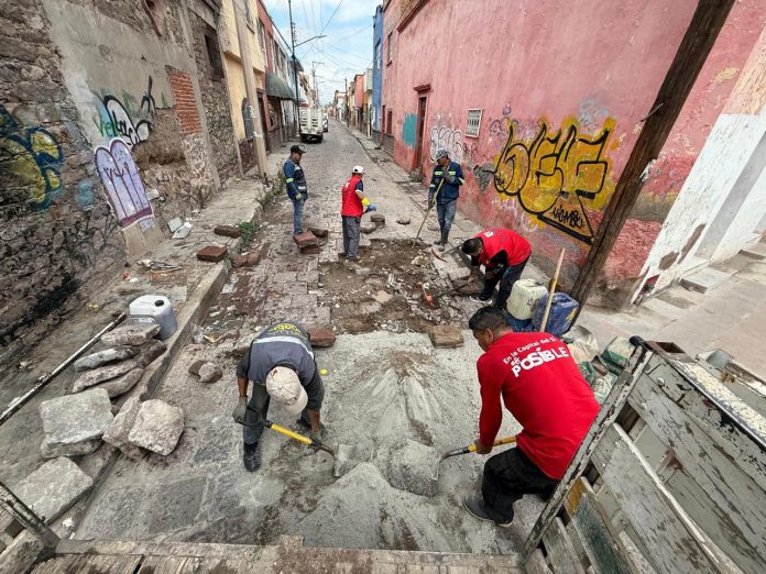 - El Ayuntamiento de San Luis Potosí continúa con los trabajos de bacheo y reparación de banquetas en el Centro Histórico, fortaleciendo la seguridad y la movilidad vial.