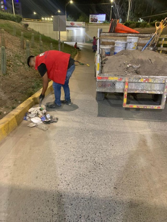 Dio a conocer que cuadrillas de Imagen Urbana se encuentran trabajando en el mantenimiento del paso a desnivel de la Glorieta González Bocanegra, así como en de la Salida a Guadalajara, retirando lodo y basura acumulada para garantizar espacios seguros y funcionales para todas y todos los potosinos.