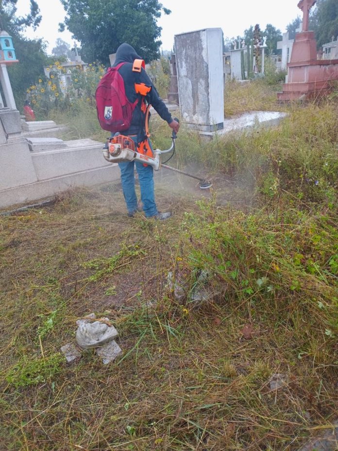 La Dirección de Servicios Municipales, informó que los trabajos de mantenimiento del panteón se realizan en forma periódica, pero debido a que las recientes lluvias han propiciado el crecimiento de maleza, es necesario intensificarlas.