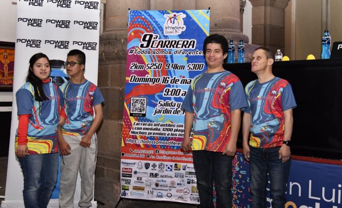 San Luis Potosí.– Este martes se presentó la IX edición de la carrera atlética “Todos Somos Diferentes” a cargo de Intégrame Down AC, misma que se llevará a cabo el domingo 16 de marzo en punto de las 9:00 horas, en un acto encabezado por la Presidenta del DIF Municipal, Estela Arriaga Márquez; acompañada por la titular de la Asociación “Intégrame Down”, Marissa González; así como el Director de Deporte Municipal Luis Fernando Alonso Molina y Arella Castañeda Ávalos, alumna de Intégrame Down,; así como invitados especiales.