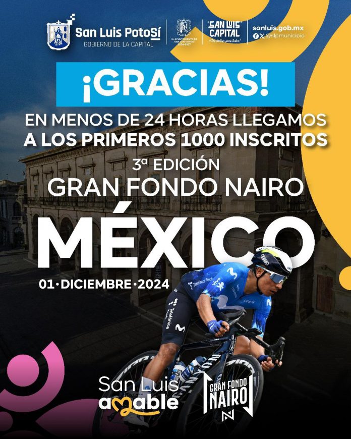El gran interés que ha generado el Gran Fondo Nairo México 2024 provocó que, a menos de 24 horas de que el Alcalde Enrique Galindo presentara el evento, se rebasaran las mil inscripciones con entrega gratuita de jersey, por lo que seguramente el número de participantes superará ampliamente las expectativas.
