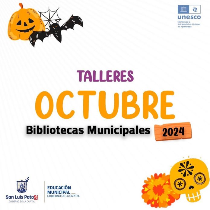 En la biblioteca CATRA en Padre Kino 2, en FOVISSSTE, se ofrecerá el taller de plastilina de 1 a 2:30 de la tarde del 28 al 31, y el taller de las Carabelas de Colón ya comenzó a impartirse en la biblioteca “Enrique Almazán”, en Yucatán 515 en la colonia Popular hasta el 11 de octubre en un horario de: 10 a 11 de la mañana, y de 4 a 5 de la tarde. Para más informes la ciudadanía puede acceder a la siguiente liga: https://www.facebook.com/EducaMpalSLP