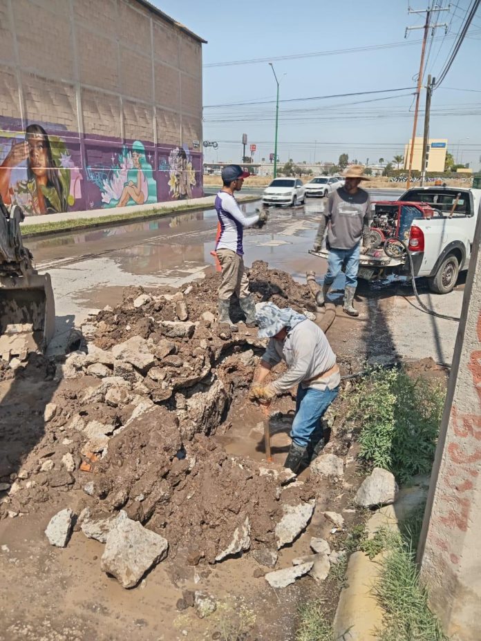 La fuga se localizó en una tubería de cuatro pulgadas de diámetro y debido a las condiciones del terreno, fue necesario el uso de maquinaria pesada para romper el pavimento y ejecutar la reparación