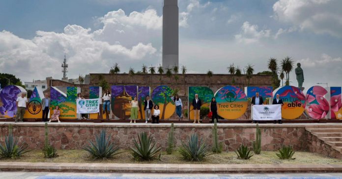 - El Gobierno de la Capital decoró las letras monumentales del Asta Bandera para celebrar que San Luis Potosí ha sido reconocida, por tercer año consecutivo, como Ciudad Árbol del Mundo.