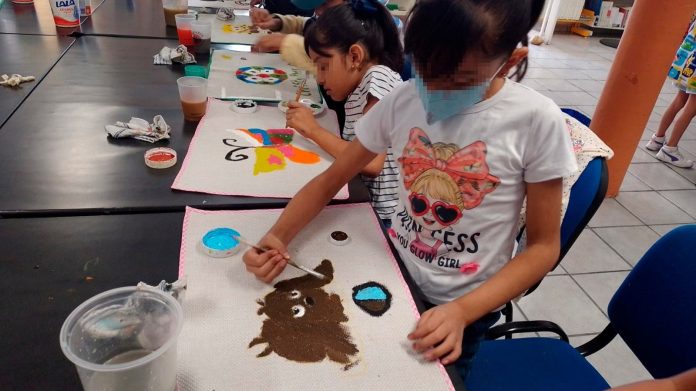 Igualmente, en la Biblioteca Municipal “Enrique Almazán Nieto”, pequeñas y pequeños participaron en la realización de llamativas y coloridas ilustraciones con pintura textil como parte de las tareas para incentivar también su creatividad.
