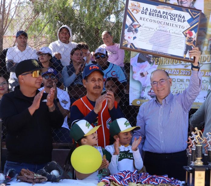 Invitado por la Liga Pequeña de Beisbol, ante niños, niñas, padres de familia y entrenadores, el Alcalde de San Luis Capital, Enrique Galindo Ceballos, inauguró la temporada 2025 de la Liga Pequeña de Béisbol, que este año lleva su nombre, en reconocimiento al impulso que ha dado al deporte. Durante el evento, anunció la creación de una unidad deportiva especializada para béisbol, con el objetivo de fortalecer la formación de nuevas generaciones en esta disciplina.