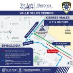 En el panteón del Saucito, que permanecerá abierto las 24 horas los días 1 y 2 de noviembre, la Policía Vial realizará cierre vial en un carril de la avenida Fray Diego de la Magdalena en el tramo de López Hermosa a Vasco de Quiroga por instalación de comercio semifijo, quedando habilitado en doble sentido a la circulación el carril en dirección norte frente al panteón.