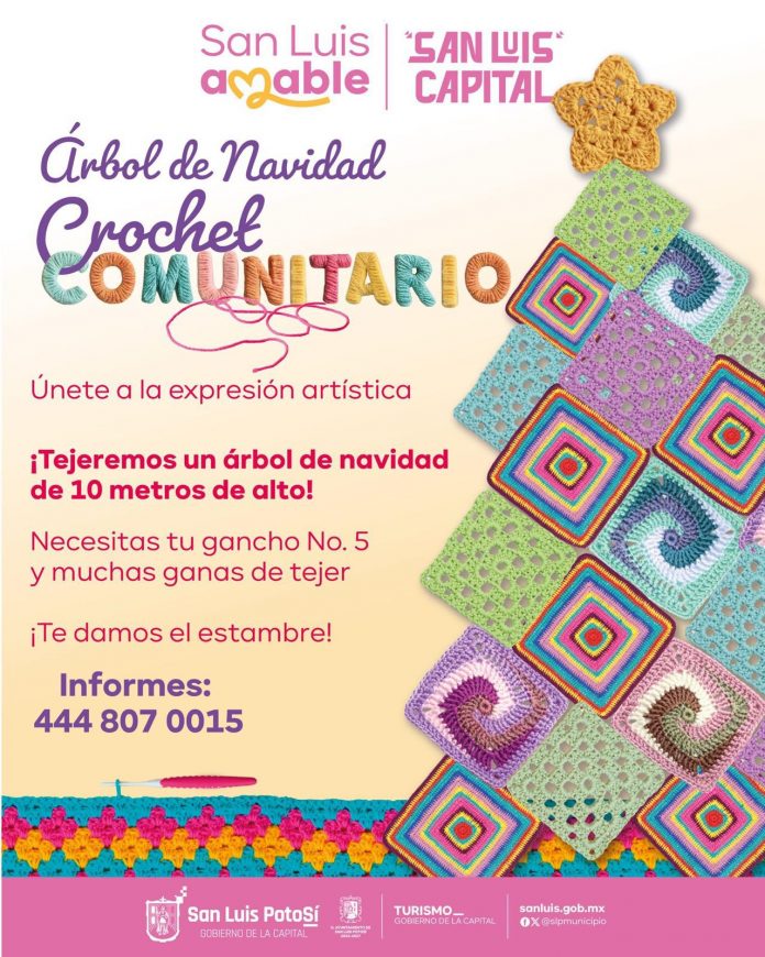 El Ayuntamiento de San Luis Capital, a través de la Dirección de Turismo Municipal, invita a la ciudadanía a participar en una innovadora actividad de tejido comunitario con la cual se confeccionará un árbol navideño de 10 metros de altura, que será instalado en la Plaza del Carmen durante la temporada decembrina.
