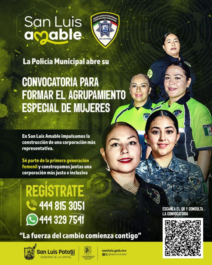 Finalmente, Villa Gutiérrez indicó que la convocatoria para formar el agrupamiento especial de mujeres puede consultarse en el sitio web sanluis.gob.mx o en las instalaciones del Instituto de Profesionalización Policial, ubicado en Calle de los Viñedos #255, Fraccionamiento Los Olivos.