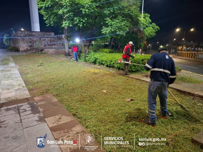 Para seguir mejorando los espacios públicos de la Capital, trabajadores municipales de la Dirección de Servicios Municipales realizaron intensas labores de limpieza y mantenimiento en diversos puntos del municipio de San Luis Potosí, en jornadas nocturnas para no afectar la circulación vehicular.