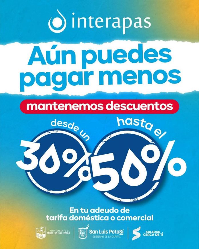 SLP. – El Organismo Intermunicipal Metropolitano de Agua Potable, Alcantarillado y Saneamiento (Interapas) recuerda a los usuarios domésticos y comerciales que solo quedan cuatro meses para aprovechar los beneficios del programa “Acaba tu deuda de una vez”, el cual estará vigente hasta el 31 de diciembre de 2025.