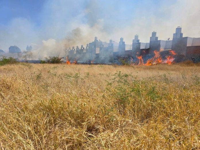 De ahí que elementos de la Dirección de Protección Civil Municipal, en coordinación con oficiales de la Policía Vial, sofocan incendio de maleza en la Carretera a Zacatecas y la calle Santa Rosa, que se ubican en la zona norte de la mancha urbana.