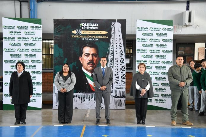 Al cumplirse 88 años de la Expropiación Petrolera de México, el Ayuntamiento de Soledad de Graciano Sánchez realizó una ceremonia cívica para conmemorar esta decisión histórica, social y económica que impactó al país, al representar un hecho de verdadera defensa y unidad nacional. La ceremonia se llevó a cabo en la secundaria «Graciano Sánchez Romo», con la participación de docentes, directivos, estudiantes y padres y madres de familia.