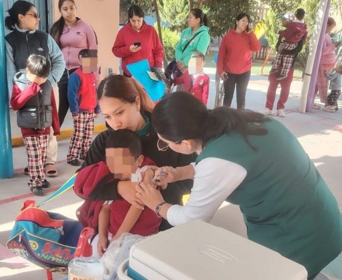 En la semana que recién culminó, se atendieron las comunidades educativas de los preescolares “Pablo Galeana” y “Sor Juana Inés de la Cruz”. Esta semana, del 23 al 26 de marzo, se acudirá a los centros “Francisco González Bocanegra” en la colonia Rivas Guillén; “Jesús García Corona” en Hogares Ferrocarrileros segunda sección; “Luis G. Monzón” en Hogares Ferrocarrileros tercera sección e “I.P.I.” en la Cabecera municipal, para ampliar la protección biológica en las y los menores, un sector vulnerable.