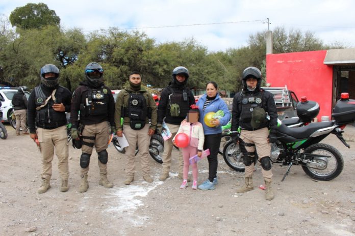 La alegría de la Navidad llegó a niñas y niños de localidades rurales de Soledad de Graciano Sánchez, con la visita sorpresa de integrantes del agrupamiento “Panteras” y de la subdirección de Proximidad Social, que forman parte de la Guardia Civil Municipal (GCM), quienes recorrieron este 25 de diciembre las comunidades Estación Techa y Estación Ventura para entregar juguetes y hacer vivir a las y los pequeños un momento especial.
