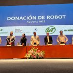 En representación del Alcalde, Juan Manuel Navarro Muñiz, el secretario general del Ayuntamiento, Benjamín Pérez Álvarez acudió a la ceremonia de donación de un robot para la práctica de procesos automatizados y digitalización, en beneficio de la comunidad estudiantil de la Universidad Tecnológica, ubicada en Soledad de Graciano Sánchez.