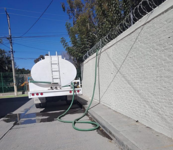 Ante el desabasto de agua persistente en planteles educativos del municipio de Soledad de Graciano Sánchez, el Ayuntamiento continúa otorgando el apoyo a través de la gestión de pipas que son enviadas directamente a los contenedores, garantizando así la solvencia de actividades principalmente de tipo higiénicas entre el alumnado y personal docente, toda vez que permanece la falta del servicio por parte de INTERAPAS.
