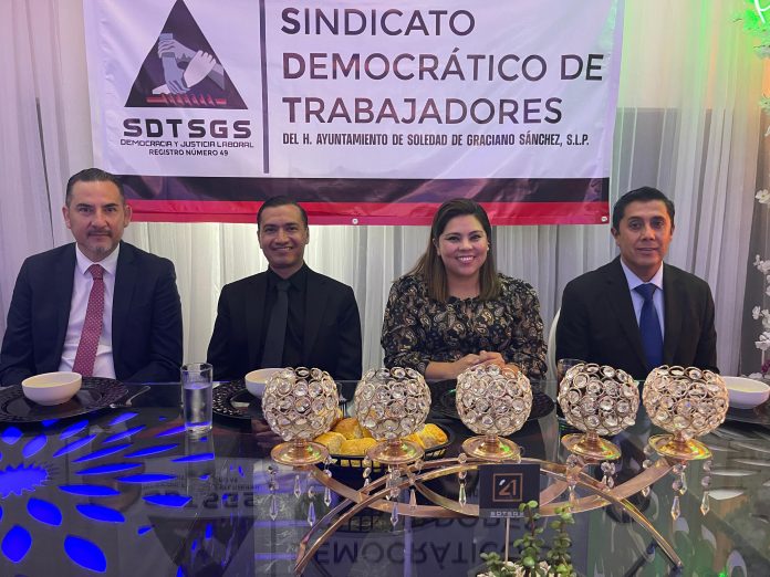 En un ambiente de celebración y unidad, el Ayuntamiento de Soledad de Graciano Sánchez refrendó el compromiso con las y los trabajadores del Sindicato Democrático, en la celebración del XXI aniversario de esta organización; en representación del Alcalde, Juan Manuel Navarro Muñiz, el secretario general del Ayuntamiento, Benjamín Pérez Álvarez, reconoció la dedicación y esfuerzo diario de quienes integran las distintas áreas del Ayuntamiento para brindar un mejor servicio a las familias de Soledad.