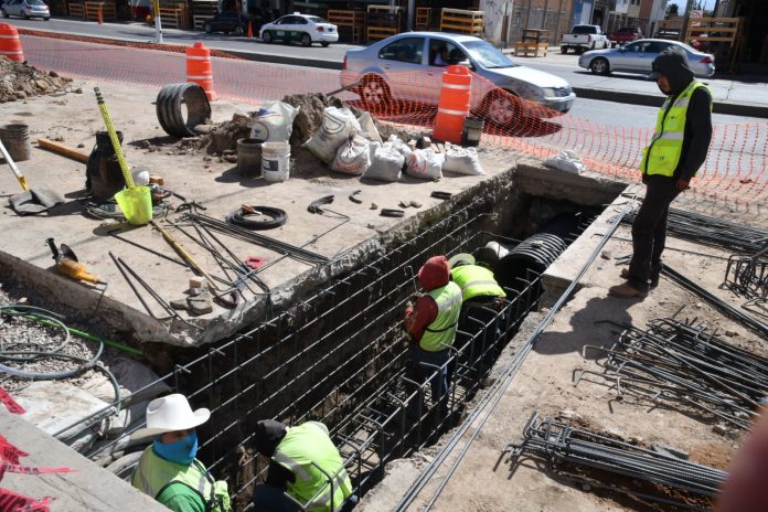 – En Privadas de la Hacienda, la construcción de la red de drenaje sanitario presenta un avance del 80 por ciento; se trabaja, actualmente, en el colector de 60 pulgadas y colocación de pozos de visita.
