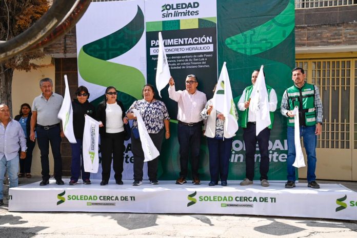 Durante su mensaje, el Alcalde anunció que, con el apoyo del Gobernador del Estado, Ricardo Gallardo Cardona, antes de que concluya su administración todas las calles de la colonia Los Fresnos serán pavimentadas integralmente, con tomas de agua, drenaje y concreto hidráulico. “Este trienio no lo vamos a concluir hasta que estemos realizando todas las calles de Los Fresnos; ninguna se nos va a quedar pendiente, vamos a hacer la obra completa, integral, con agua, drenaje, tomas y descargas, porque en Soledad no hay habitantes de primera ni de segunda”, expresó el edil ante decenas de vecinos reunidos.
