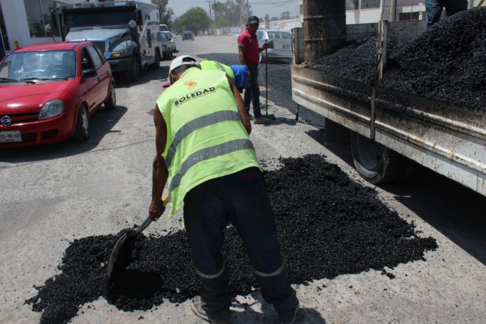 El funcionario insistió que el bacheo en Soledad de Graciano Sánchez se fortalece y sólo se detiene cuando las condiciones climáticas no son propicias para colocar la emulsión y que por la humedad es más fácil que se desprenda rápidamente.