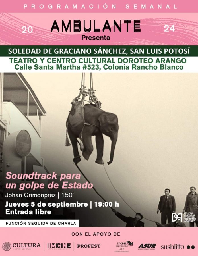 Este jueves 5 de septiembre se exhibirá «Soundtrack para un golpe de estado», un documental reciente dirigido por Johan Grimonprez en 2024, que promete ofrecer una perspectiva diferente sobre los acontecimientos políticos contemporáneos, a través de una exploración sonora y visual que invita a la reflexión sobre el poder y la resistencia.