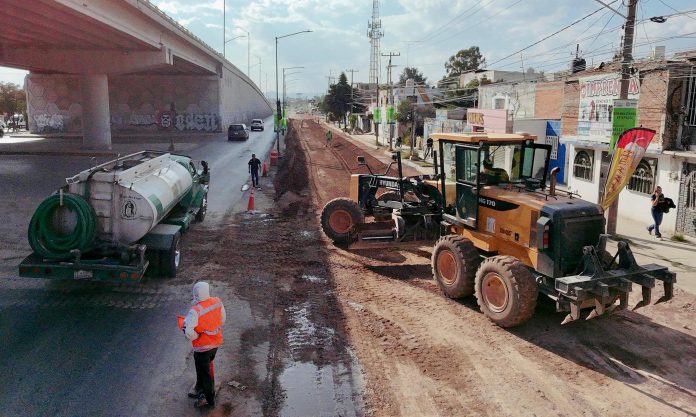 El Ayuntamiento de Soledad de Graciano Sánchez, en colaboración con el Gobierno del Estado, avanza rápidamente en la rehabilitación de la lateral del bulevar Valle de los Fantasmas en las colonias Hogares Ferrocarrileros en sus tres secciones, cumpliendo con el plan de mejora de la infraestructura urbana que externaron el Gobernador, Ricardo Gallardo Cardona y el Alcalde Juan Manuel Navarro, en beneficio de la seguridad vial de miles de automovilistas y peatones.